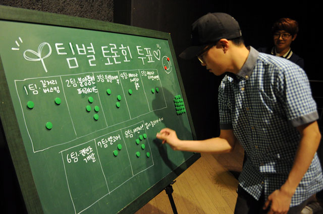 즐겁게 토론을 마친 후 팀별로 토론의 결과를 발표하고 좋은 내용을 투표했습니다~