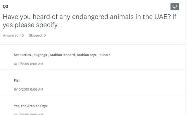 Q3. 아랍에미리트의 멸종위기동물에 대해 들어본 적이 있나요? 있다면 작성해주세요.