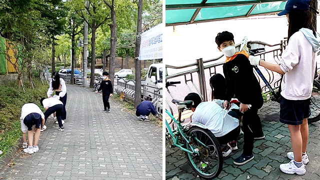 빠짐없이 찾아 열심히 쓰레기를 줍고 있는 친구들의 모습이 보이시나요? :)
