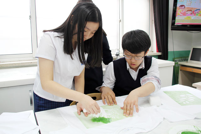 열심히 꼼꼼하게 천연티셔츠를 만들고 있는 우리 친구들!
