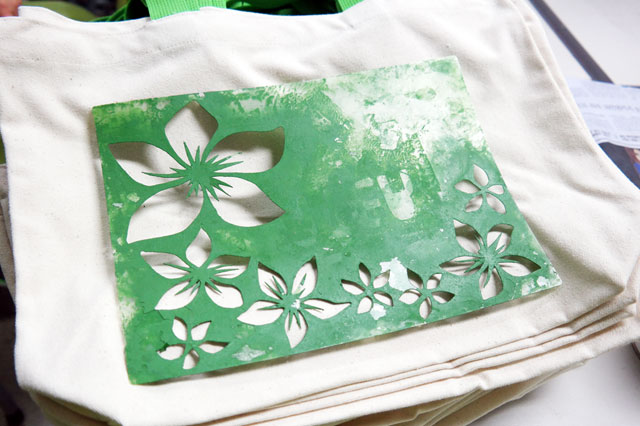 무지에코백, 천연페인트(솔잎과 시금치로 만들었어요^^), 스펀지, 도안,, 신문지