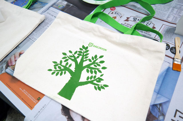 먼저, 대자연 로고가 찍힌 무지 에코백을 준비해주세요.