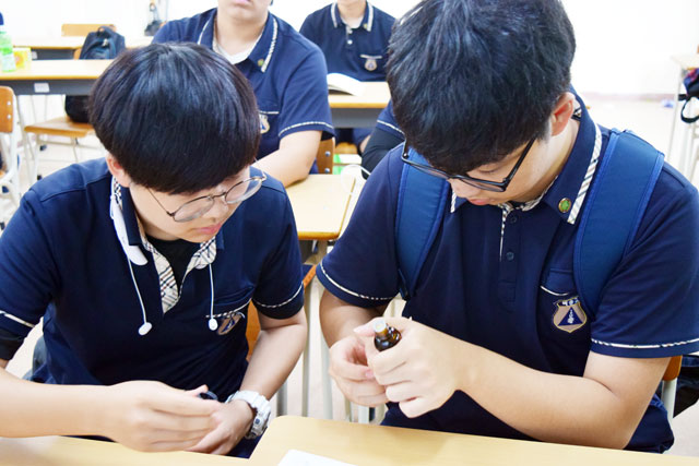 진지한 모습으로 수업에 임하고 있는