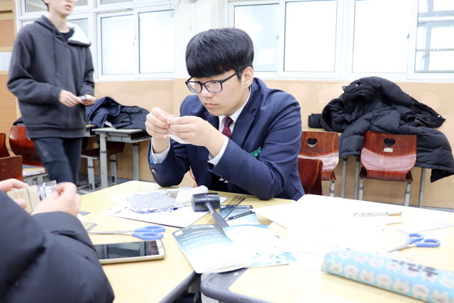 처음 만들어 보는 것이라 활동가 선생님의 설명을 잘 듣고있는 잠신고등학교 학생들!