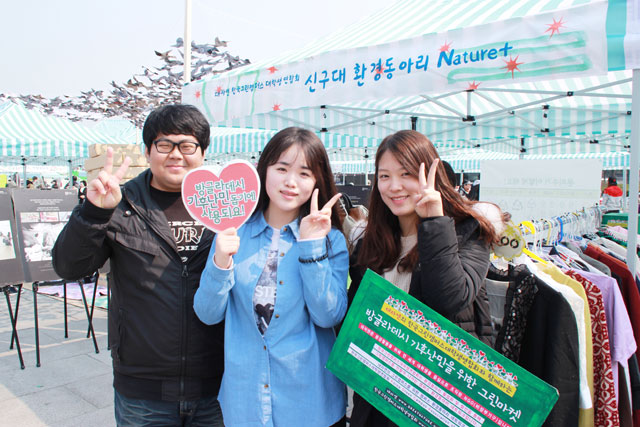 아나바다 운동과 더불어 수익금을 환경난민 돕기에 사용하시는 신구대학교 환경동아리 Nature+오늘은 광화문 나눔장터에서 오픈마켓을 개최했습니다^^캠퍼스 내에서만 판매하느라 잘 판매가 되지 않았던 어른, 유아 옷들도 다 들고 나왔습니다.여기저기..